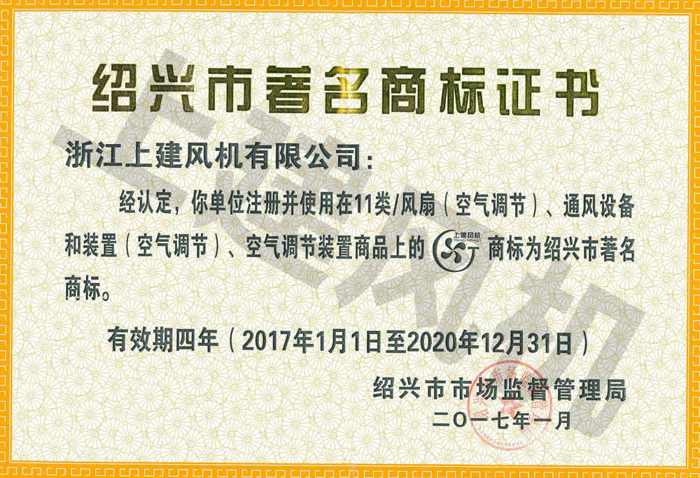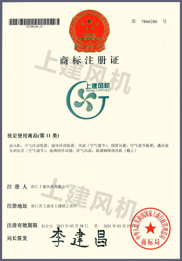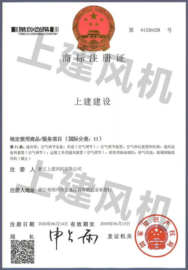上建風(fēng)機(jī)商標(biāo)注冊(cè)證