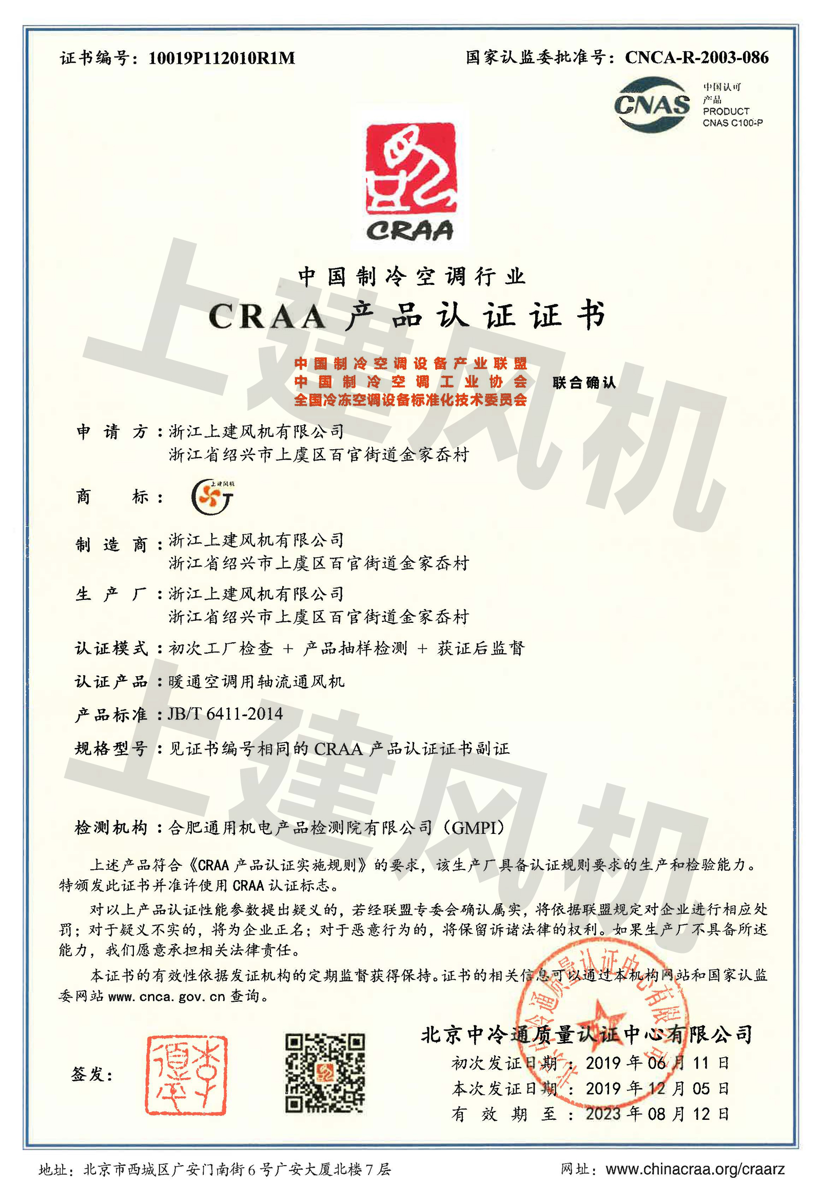 CRAA產(chǎn)品認(rèn)證證書