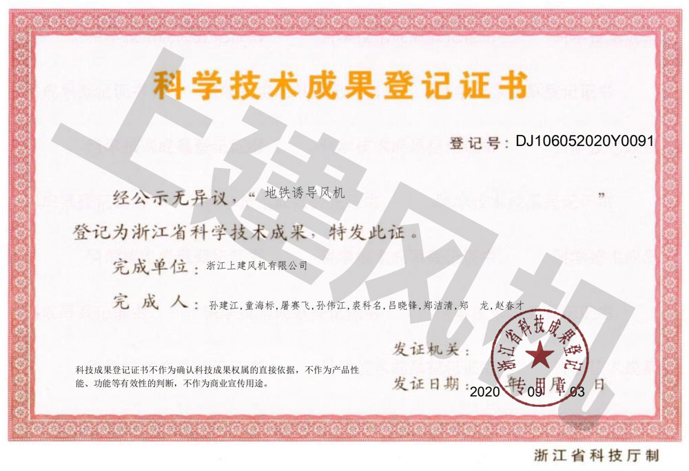 成果登記證書-地鐵誘導(dǎo)風(fēng)機(jī)