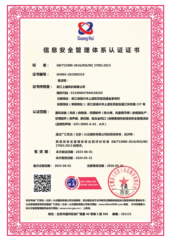 信息安全管理體系認(rèn)證證書