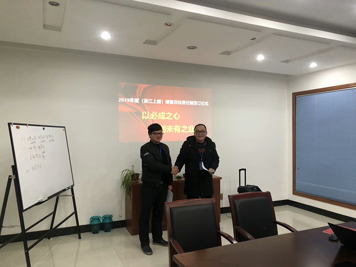 為保證公司2019年度經(jīng)營目標(biāo)順利實(shí)現(xiàn),建立績效管理體制和激勵(lì)約束機(jī)制,強(qiáng)化企業(yè)執(zhí)行力,提升公司競爭力,2019年1月14日公司舉行了銷售目標(biāo)責(zé)任制簽訂儀式。目的是通過這樣儀式,把責(zé)任形式確定下來,讓每位銷售員更加明確自身工作責(zé)任和壓力,增強(qiáng)意識(shí),提高認(rèn)識(shí),推進(jìn)公司各項(xiàng)工作在新的一年里更上一臺(tái)階。