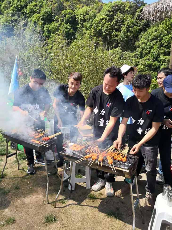經(jīng)過約一個小時車程來到了素有上虞后花園之稱的陳溪石筍下,石筍山,網(wǎng)紅鯉魚壩,清澈的溪水,新鮮的空氣讓員工們興奮不已。各隊(duì)有序的向后勤組領(lǐng)取燒烤的食材和工具,井然有序的動手工作,有的洗菜,有的搭土灶,有的切羊肉,有的串羊肉,大家分工協(xié)作,不到半小時時間大家都做好了燒烤的一切準(zhǔn)備。有騰出空余時間,各隊(duì)練習(xí)著下午的拓展活動節(jié)目。到了飯點(diǎn)時,大家一起展開燒烤,燒烤的香味迎面撲來,各隊(duì)相互比量著誰隊(duì)的羊肉串燒烤的最有水準(zhǔn)�?鞓返臍g聲笑語響徹著整個景區(qū)。