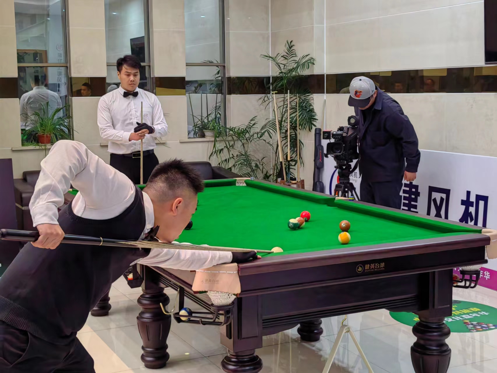本次杯賽火熱的狀況吸引不少公司外的臺(tái)球愛(ài)好者關(guān)注,連電視臺(tái)都聞?dòng)嵹s來(lái)采訪,正巧趕上本次比賽最精彩的一場(chǎng)。公司市場(chǎng)部的黃凱與徐梁波,為大家?guī)?lái)一場(chǎng)讓人直呼過(guò)癮的激情對(duì)抗,只見(jiàn)兩位選手身穿白色襯衫,脖戴黑色蝴蝶結(jié),動(dòng)作優(yōu)雅。每一次出桿都牽動(dòng)在場(chǎng)所有人的心,當(dāng)黃凱還剩一顆黑球時(shí),徐梁波靈機(jī)一動(dòng),用一桿高桿吸庫(kù)斯諾克征服全場(chǎng)觀眾,大家都紛紛鼓起掌來(lái)。