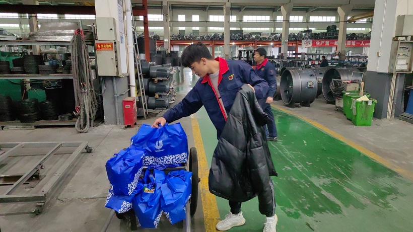 為鼓舞員工士氣,激發(fā)員工工作干勁,公司福利激勵可謂是一波接著一波。2023年2月13日開工僅僅一周,上建風(fēng)機(jī)的小伙伴就收到了來自公司的深切慰問。一袋袋干貨大禮包送到了員工的手中。