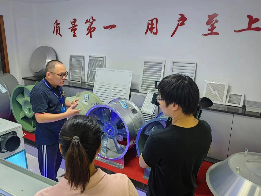 最后采訪記者進(jìn)入車(chē)間進(jìn)行拍攝,作為風(fēng)機(jī)市場(chǎng)最早的開(kāi)拓者之一,我司目前已經(jīng)有了完善的產(chǎn)品鏈以及未來(lái)幾年內(nèi)的產(chǎn)品規(guī)劃。目前市場(chǎng)中的HTFC系列柜式離心風(fēng)機(jī),SJF系列高效節(jié)能軸流風(fēng)機(jī)和RTC系列新型屋頂風(fēng)機(jī)都受到了廣泛好評(píng),消防排煙防火閥、多葉送風(fēng)口、消聲器等產(chǎn)品都有生產(chǎn)線(xiàn),精湛的工藝與高效的生產(chǎn)得到采訪記者的嘖嘖稱(chēng)贊。